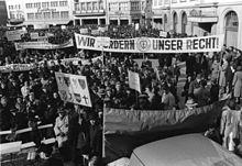 About 180,000 German-speaking Hungarian citizens were stripped of their citizenship and possessions, and expelled to the Western zones of Germany.[127] By July 1948, 35,000 others had been expelled to the Eastern zone of Germany.[127] Most of the expellees found new homes in the south-west German province of Baden-Württemberg,[128] but many others settled in Bavaria and Hesse. Other research indicates that, between 1945 and 1950, 150,000 were expelled to western Germany, 103,000 to Austria, and none to eastern Germany.[110] During the expulsions, numerous organized protest demonstrations by the Hungarian population took place.[129]