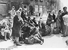 During the later stages of World War II and the post-war period, Germans and Volksdeutsche fled or were expelled from various Eastern and Central European countries, including Czechoslovakia, and the former German provinces of Silesia, Pomerania, and East Prussia, which were annexed by Poland and the Soviet Union. In 1957, Walter Schlesinger discussed reasons for these actions, which reversed the effects of German eastward colonization and expansion: he concluded, "it was a devastating result of twelve years of National Socialist Eastern Policy."[1] The idea to expel the Germans from the annexed territories was proposed by Winston Churchill, in conjunction with the Polish and Czechoslovak exile governments in London at least since 1942.[2][3] In late 1944 the Czechoslovak exile government pressed the Allies to espouse the principle of German population transfers. On the other hand, Polish prime minister Tomasz Arciszewski, in an interview for The Sunday Times on 17 December 1944, supported the annexation of Warmia-Masuria, Opole Regency, north-east parts of Lower Silesia (up to the Oder line), and parts of Pomerania (without Szczecin), but he opposed the idea of expulsion. He wanted to naturalize the Germans as Polish citizens and to assimilate them.[4]