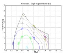 Extra power, or specific excess power,[3] is a very basic method of determining an aircraft's flight envelope. It is easily calculated, but as a downside does not tell very much about the actual performance of the aircraft at different altitudes.
