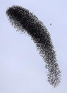 A flock is a gathering of a group of same species animals in order to forage or travel with one another.[1] In avians flocks are typically seen in association with migration. While this is true it can also be seen that flocking is important in safety from predation and foraging benefits. Living in a flock can also come at a cost to the birds living within it.[2]