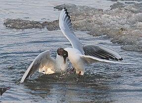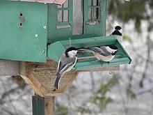 By living in a large flock, birds are also able to attack the predator with a stronger force compared to if the bird was on its own. In the black-capped chickadees it can be seen that flocks of birds can produce a mobbing call when it visualizes a possible predator.[8] In response the black-capped chickadees within the flock surround the predator and attack it in a mob-like fashion in order to force the predator to leave.[2] This is known as mobbing.[2] This mobbing behaviour is quickly learned by the juveniles within a flock meaning that these individuals will be better equipped as adults to ward off predators and respond rapidly when a predator is in sight.[2]
