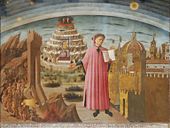 - Dante Before the City of Florence by Domenico di Michelino (1465). This painting is especially interesting because it shows us, apart from scenes of the Divine Comedy, a view on Florence in 1465, a Florence such as Dante himself could not have seen in his time.