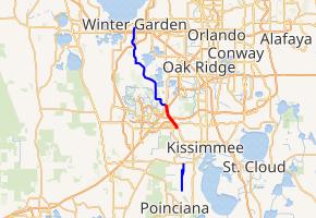 | Winter Garden | 16.6 | 26.7 | Access via frontage roads; exit 19 on SR 429 (Western Beltway) | ||