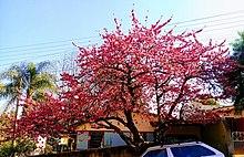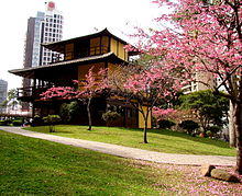 In the capital city of Paraná, the first seedlings were brought by Japanese immigrants in the first half of the 20th century, but large quantities of them were only planted from the 1990s, with the opening of the Botanical Garden of Curitiba.[33] Nowadays, the seedlings are produced locally and used in afforestation[34] of streets and squares – as in the Japanese Square, where there are more than 30 cherry trees around the square which were sent by the Japanese Empire to Curitiba.[35]