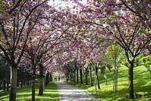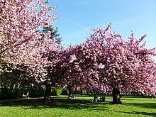 Hagley Park is the largest urban open space in Christchurch, New Zealand and has many cherry blossom trees of several varieties.[74]
