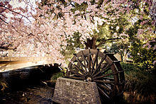 Japan gave 3,020 cherry blossom trees as a gift to the United States in 1912 to celebrate the nations' growing friendship, replacing an earlier gift of 2,000 trees that had to be destroyed due to disease in 1910. These trees were planted in Sakura Park in Manhattan and lined the shore of the Tidal Basin and the roadway in East Potomac Park in Washington, D.C. The first two original trees were planted by first lady Helen Taft and Viscountess Chinda on the bank of the Tidal Basin. The gift was renewed with another 3,800 trees in 1965.[79][80] In Washington, D.C. the cherry blossom trees continue to be a popular tourist attraction (and the subject of the annual National Cherry Blossom Festival) when they reach full bloom in early spring.[81] Just outside of Washington, the suburb of Kenwood in Bethesda, Maryland, has roughly 1,200 trees that are popular with locals and tourists.[82]