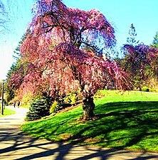 Vancouver, British Columbia, is famous for its thousands of cherry trees (estimated 50,000) lining many streets and in many parks, including Queen Elizabeth Park and Stanley Park. Vancouver holds the Vancouver Cherry Blossom Festival every year.[36] With multiple varieties and a temperate climate, they begin to bloom in February yearly and peak in April.