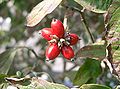 Native Americans used the bark and roots in a remedy for malaria; a red dye was also extracted from the roots.[20] The species has been used in the production of inks, scarlet dyes, and as a quinine substitute. The hard, dense wood has been used for products such as golf club heads, mallets, wooden rake teeth, tool handles, jeweler's boxes and butcher's blocks.[21][9]:100 Cornus florida is the state tree and flower of Virginia,[22] the state tree of Missouri, and state flower of North Carolina.[23][24] It was used to treat dogs with mange, which may be how it got its name.[24] The red berries are not edible, despite some rumors otherwise.[25]
