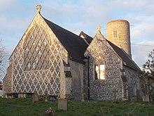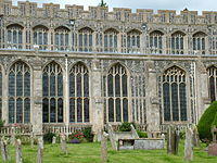 Flushworked buildings belong to the Perpendicular style of English Gothic architecture. It is characteristic of the external walls of medieval buildings – most of the survivors being churches – in parts of Southern England and especially East Anglia.[1] Flushwork begins in the early 14th century, but the peak period was during the wool boom between about 1450 and the English Reformation of the 1520s, when church building virtually ceased and brick construction became more fashionable. The technique continued in occasional use, and saw a major revival in the 19th century, and is still sometimes used in a modern style today, as well as for the restoration or extension of older buildings.