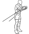 A variation involves sitting upright and using a cable machine; the machine is next to the shoulder opposite the muscle being worked (in line with the coronal plane), and the hand moves through the transverse plane across the front of the body at approximately eye level.[7]