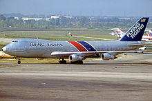 Charter and scheduled passenger operations were flown by their subsidiary, Metro International Airlines, which was formed in January 1981, and ceased operations in 1983, when it was sold to Tower Air.[9][10][2] The scheduled Boeing 747 passenger service route was New York City JFK Airport - Brussels - Tel Aviv operated several days a week.[11]