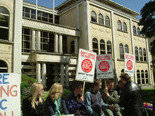 Informational picketing is the legal name given to the type of picketing described above. Informational picketing, as described by Merriam-Webster's Dictionary of Law, entails picketing by a group, typically a labour or trade union, which inform the public about a matter of concern important to the union.[2] It is a popular picketing technique for nurses to use outside of healthcare facilities. For example, on April 5, 2006 nurses of the UMass Memorial Medical Center (UMMHC) participated in two separate informational picketing events to protect the quality of their nursing program.[3] Informational picketing was used to gain public support and promote further bargaining with management.[3]