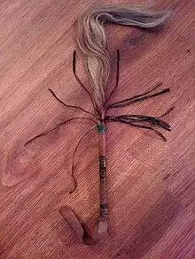 A fly-whisk forms part of the royal regalia of Thailand. It consists of the tail hairs of a white elephant.[9] Fly-whisks were also used in Polynesian culture as a ceremonial mark of authority.[10]