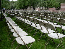 In the United States, an early patent for a folding chair was by John Cram in 1855.[2] In 1947, Fredric Arnold created the first aluminum folding chair with fabric strapping for the seat and back. By 1957, the Fredric Arnold Company of Brooklyn, New York, was manufacturing more than 14,000 chairs per day. Today, the folding chair is mostly made of hard plastic or metal or wood. Folding chairs can be divided into different categories.