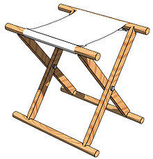Most folding chairs pivot at the seat level. The seat aligns between the back supports. The back support and the front legs are the same part. There are, however, several designs that fold under the seat. Side-X stools consist of two X-shaped pieces with a sheet of cloth between them that becomes the seat. Front-X chairs are similar to side-X stools, but have the addition of a backrest. Side-X chairs are unique because the support for the backrest and front foot is the same part. The seat is collapsed to align between the sidebars, either down between the front legs, or up to align between back-sidebars. Mechanisms vary, but the supports for the back and the front feet are invariably the same part.
