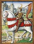 Joan of Arc depicted on horseback in an illustration from a 1505 manuscript. The martyr and saint Joan of Arc is a national hero in France