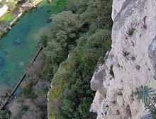 The fountain, or spring, of Vaucluse, situated at the feet of a steep limestone cliff 230 metres high, is the biggest spring in France. It is also the fifth largest in the world with an annual flow of 630 million cubic metres.[1]