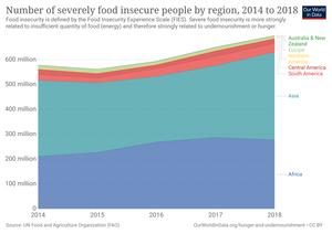 Famine and hunger are both rooted in food insecurity. Chronic food insecurity translates into a high degree of vulnerability to famine and hunger; ensuring food security presupposes elimination of that vulnerability.[25]