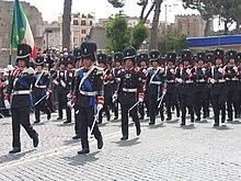 The Carabinieri (the militarised gendarmerie-type law enforcement agency of Italy) also fields a ceremonial guards unit – the Reggimento Corazzieri ("Cuirassiers Regiment"), based in Rome, which carries its ceremonial role both on foot and on horseback at the Quirinal Palace – the official residence of the President of Italy. It is more compatible to a dragoons regiment while being more of a cuirassier unit due to its uniform.