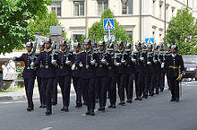 The first infantry regiment of the Republican Guard is responsible for protecting the President of France and for ceremonial duties. Other historical French foot guard regiments include:
