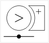 The outcome of the Force-Dynamic scenario depends on both the intrinsic tendency and the balance between the forces. The result is represented by a line beneath Agonist and Antagonist. The line has an arrowhead if the outcome is action and a large dot if the outcome is rest (d, figure 1). In the example, the door stays closed; the Antagonist succeeds in preventing it from being opened. The sentence 'The door cannot open' can be Force-Dynamically represented by the diagram at the top of this page.