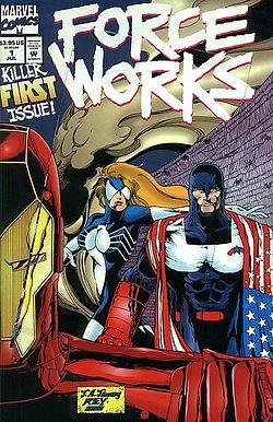 The first version of Force Works first appeared in the comic book series Force Works #1 (July 1994) where they were created by writers Dan Abnett and Andy Lanning and initially drawn by Tom Tenney.[1] The team was formed from the remains of the West Coast Avengers, after leader Iron Man left the Avengers due to an internal dispute. Force Works maintained a different outlook than that of the Avengers, trying to preempt natural and man-made disasters.[2]