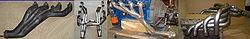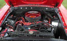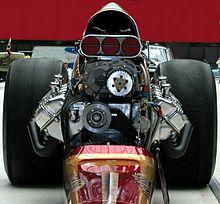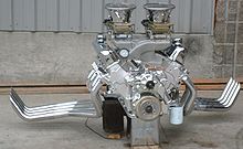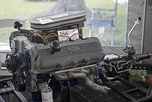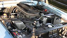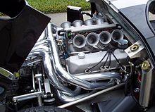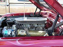 The FE engine is used extensively in custom installations. The extensive availability of multi-carburetor and other exotic intakes, as well as many other "dress-up parts", has contributed to its use where the engine would be shown off. FEs powered the original Batmobiles built by George Barris for the 1966 TV series. It fit under the hood along with the Bat-ray, Bat-ram, a nose-mounted aluminum chain slicer and all the associated support hardware of the 5,500-pound vehicle. One dragstrip version was equipped with a Holman-Moody prepped 427 FE with dual quads, which would be launched in second gear and spin its tires the entire quarter-mile length of the track.[14] In 1968 Carroll Shelby created a custom Mustang using a California Special model and an experimental Ford 428 FE (known as a CJX, precursor to the 428 Cobra Jet). This "Green Hornet"[15] had a custom independent rear suspension, four-wheel disc brakes and a Conelec electronically controlled port fuel injection system. It had a 5.7 sec 0-60 time and 157 mph top speed, versus a factory 428 cu in FE Shelby GT500's 6.5 second 0-60 and 128 mph top speed.[16][17]