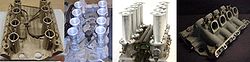 3) Head type: low-riser, medium-riser, high-riser, tunnelport, or SOHC. These descriptions actually refer to the intakes used with the heads...a low-riser intake, designed to fit under a low hoodline was the earliest design. The high-riser intake required a bubble in the hood of cars it was installed in for clearance. While the low and medium riser heads could be used in combination with either low or medium riser intakes, the high riser head required a high-riser intake due to the increased height of the intake port. The medium riser's intake port is actually shorter in height, though wider, than the low-riser's port. The high-riser's ports are taller than either the low or medium-riser ports. Low-riser intakes have the carburetor placed relatively low so that the air-fuel mix must follow a more convoluted path to the chamber. A high-riser's intake places the carburetor approximately 6 in (152 mm) higher so the air-fuel mixture has a straighter path to the chamber. The tunnelport and SOHC heads both bolted onto FE blocks of either variety but required their own matching intakes. Within the major head groups, there were also differences in chamber designs, with small chambers, machined chambers and large chambers. The size and type of chamber affected the compression ratio, as well as the overall performance characteristics of the engine.