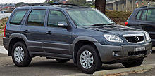 At the time, larger sport-utility vehicles tended to use pickup truck-based, body-on-frame designs. Other car makers, Jeep, Toyota and Honda had been offering smaller unibody designs, the Jeep Cherokee (XJ), RAV4 and CR-V respectively. Solid rear axles were commonly used on the full-sized truck-based SUVs and Jeep Cherokee due to their ability to carry heavy loads at the expense of a comfortable ride and good handling. Ford and Mazda decided to offer a car-like, unibody design with a fully independent suspension and rack and pinion steering similar to the RAV4 and CR-V in the Escape.[5] Although not meant for serious off-roading, a full-time all-wheel-drive (AWD) system supplied by Dana was optional, which included a locking center differential activated by a switch on the dashboard.[6] The AWD system normally sends most of the power from the engine to the front wheels. If slipping is detected at the front, more power will be sent to the rear wheels in a fraction of a second. The four wheel drive system was a newer version of Ford's "Control Trac" 4x4 system, dubbed the Control Trac II 4WD in the Escape. This system allowed the front wheels to receive 100% of the torque until a slip was detected. Using a Rotary Blade Coupling, the rear wheels could be sent up to 100% of the power in fractions of a second. When switching the system from "Auto" to "On," the front and rear axles are locked at a 50/50 split; the reaction time necessary to engage the rear wheels is reduced via an integrated bypass clutch. The Control Trac II system allows for a four-wheel drive vehicle without the use of a center differential. The entire braking system was built by Continental Teves, including the ABS and various related suspension components.[7] CKD production began in 2002 at Ford Lio Ho Motor Co. in Taiwan for various Asian markets.[8] One difference between the Tribute and the Ford Escape is that, in an effort to culture a sporty image, the Tribute's suspension is tuned for a firmer ride than the Escape.