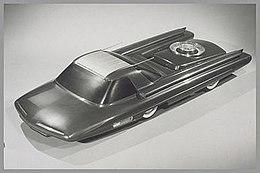 The Ford Nucleon is a concept car developed by Ford in 1957 designed as a future nuclear-powered car, one of a handful of such designs during the 1950s and '60s. The concept was only demonstrated as a scale model. The design did not include an internal-combustion engine; rather, the vehicle was to be powered by a small nuclear reactor in the rear of the vehicle, based on the assumption that this would one day be possible by reducing sizes. The car was to use a steam engine powered by uranium fission similar to those found in nuclear submarines.[1]