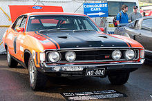 Between April 1973 and August 1973, Ford Australia built 250 XA Falcon GTs fitted with the RPO 83 package, 130 of these being sedans and 120 being hardtops.[11] RPO 83 comprised three variations from the standard XA Falcon GT, these being of a Holley 780 carburettor, 2.25 inch exhaust headers and a clutch slave cylinder hydraulic pipe heat shield.[11] Pricing and external appearance did not vary from the standard models.[11] The 2.25 inch exhaust headers were subsequently homologated for the XA Falcon GT for Group C Touring Car racing, including the 1973 Hardie-Ferodo 1000.[11]