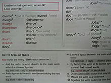 Spelling dictionaries are referencing materials that specifically aid users in finding the correct spelling of a word. Unlike common dictionaries, spelling dictionaries do not typically provide definitions and other grammar-related information of the words. While typical dictionaries can be used to check or search for correct spellings, new and improved spelling dictionaries can assist users in finding the correct spelling of words even when the first alphabet is unknown or incorrect.[35] This circumvents the alphabetic ordering limitations of a classic dictionary.[34] These spelling dictionaries are especially useful to foreign language learners as inclusion of concise definitions and suggestions for commonly confused words help learners to choose the correct spellings of words that sound alike or are pronounced wrongly by them.[35]