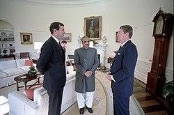 Although Pakistan was ruled by Muhammad Zia-ul-Haq and his military dictatorship (1978–1988), it was an important ally against Soviet efforts to take control of Afghanistan.[55] Reagan's new priorities enabled the effective effort by Congressman Charles Wilson (D-TX), aided by Joanne Herring, and CIA Afghan Desk Chief Gust Avrakotos to increase the funding for Operation Cyclone. Congress passed a six-year $3.2 billion programme of economic and military assistance, plus secret to the Afghan resistance sent through Pakistan. American officials visited the country on a routine basis, bolstering the Zia regime and weakening Pakistan's liberals, socialists, communists, and democracy advocates. General Akhtar Abdur Rahman of ISI and William Casey of CIA worked together in harmony, and in an atmosphere of mutual trust. Reagan sold Pakistan attack helicopters, self-propelled howitzers, armoured personnel carriers, 40 F-16 Fighting Falcon warplanes, nuclear technology, naval warships, and intelligence equipment and training.[56][57]