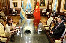 The foreign relations of the People's Republic of China (PRC), commonly known to most states as China, guides the way in which China interacts with foreign nations and expresses its political and economic weaknesses and values. As a great power and emerging superpower, China's foreign policy and strategic thinking are highly influential. China officially claims it "unswervingly pursues an independent foreign policy of peace. The fundamental goals of this policy are to preserve China's independence, sovereignty and territorial integrity, create a favorable international environment for China's reform and opening up and modernization of construction, and to maintain world peace and propel common development."[1] An example of a foreign policy decision guided by "sovereignty and territorial integrity" is not engaging in diplomatic relations with any country that recognizes the Republic of China (Taiwan), which the PRC does not recognise as a separate nation.[2][3][4]