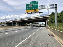 The most prominent highway serving Forest Heights is Interstate 95/Interstate 495 (the Capital Beltway). I-495 follows the Capital Beltway around Washington, D.C., providing access to its many other suburbs. I-95 only follows the eastern portion of the beltway, diverging away from the beltway near both its north and south ends. To the north, I-95 passes through Baltimore, Philadelphia, New York City and Boston on its way to Canada, while to the south, it traverses Richmond on its way to Florida.