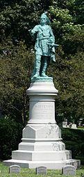 Since its inception, Forest Lawn has served as a cemetery, park, arboretum, crematory and outdoor museum. Monuments, mausoleums and sculptures have attracted visitors for over 150 years. The first sculpture of Seneca Indian chief Red Jacket was erected in 1851. Red Jacket is depicted wearing the richly embroidered scarlet coat presented to him by a British officer, while on his breast is displayed the large silver peace medal awarded to him by President George Washington.[2][3]