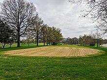 Between 2001 and 2004, the three courses and the clubhouse were rebuilt under the direction of course designer Stan Gentry.[59] The rebuilding project initially was funded by St. Louis developer Norman Probstein with a gift of $2 million, followed by donations of $2 million from Eagle Golf, $2.4 million from the Danforth Foundation, $4.5 million from Forest Park Forever, and $1.6 million from the city of St. Louis.[60] The three rebuilt courses are named for trees in St. Louis: the Hawthorn is a relatively flat and walkable layout; the Dogwood is a somewhat hilly course with a water fairway; and the Redbud is very hilly and the most challenging layout of the three.[60] One glass-enclosed clubhouse serves all three courses, and it includes a restaurant open to all park users known as Ruthie's Grill.[60] After the completion of the renovations, the Forest Park Golf Course was named the Best Golf Course in St. Louis by the local alternative newspaper, the Riverfront Times.[61]