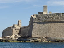 Fort Saint Elmo (Maltese: Forti Sant'Iermu) is a star fort in Valletta, Malta. It stands on the seaward shore of the Sciberras Peninsula that divides Marsamxett Harbour from Grand Harbour, and commands the entrances to both harbours along with Fort Tigné and Fort Ricasoli. It is best known for its role in the Great Siege of Malta of 1565.