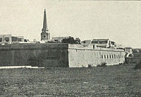 Fort St George (or historically, White Town[1]) is the first English (later British) fortress in India, founded in 1639[2] at the coastal city of Madras, the modern city of Chennai. The construction of the fort provided the impetus for further settlements and trading activity, in what was originally an uninhabited land.[3] Thus, it is a feasible contention to say that the city evolved around the fortress.[4] The fort currently houses the Tamil Nadu legislative assembly and other official buildings.