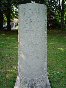 Forum Hadriani, in the modern town of Voorburg, was the northernmost Roman city on the European continent and the second oldest city of the Netherlands.[1] It was located in the Roman province Germania Inferior and is mentioned on the Tabula Peutingeriana, a Roman road map.