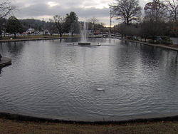 Fountain City Lake— commonly called the "Duck Pond"— remains one of Fountain City's most prominent features. Parks include Fountain City Park, located on the site of the old Fountain Head Campground, which consists of 12 acres (0.049 km2) situated along the small spring that feeds into First Creek, the Fountain City Ball Park (built in 1954), and the Fountain City Art Center (built originally as a library in 1964).