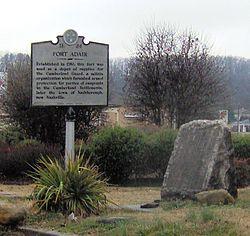 Euro-American settlement in what is now Fountain City began with the completion of Fort Adair (sometimes called Adair's Station), a supply depot built by Captain John Adair (1732–1827) around 1791 to protect westward-bound migrants from hostile Cherokee in the waning years of the Cherokee–American wars. The fort's exact location is unknown, but it was likely located in the vicinity of the modern Lynnhurst Cemetery, near the confluence of Adair Creek and First Creek. Adair and his wife are buried atop a hill overlooking the cemetery.[4][5]