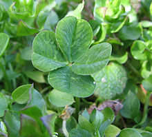 Trifolium repens 'Good Luck' is a cultivar which has three, four, or five green, dark-centered leaflets per leaf.[13]