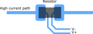 It is common to provide 4-wire connections to current-sensing shunt resistors of low resistance operating at high current.