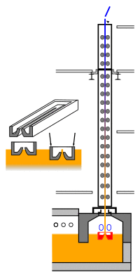 The Debiteuse is the starting point of the vertical draw, where the glass begins to change from a hot syrupy mass into useful flat glass. We will call the glass from the point of the Debiteuse until it is cut a "ribbon".