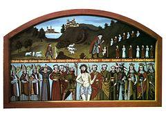Devotion to the fourteen "Auxiliary Saints" began in Rhineland, now part of Germany, in the time of the Black Death.[2]