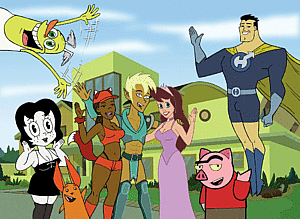 A dimwitted, lecherous, heteroflexible parody of Superman (and other superheroes), with a visual style taken from the cartoons of Bruce Timm and Max Fleischer. Most of his humor revolves around his perverse sexual tastes, his tendency toward violence, or his stupidity; there is also a running joke in which he is heavily suggested to be pansexual and interested in necrophilia. Among reality TV archetypes, he represents the macho egotist.