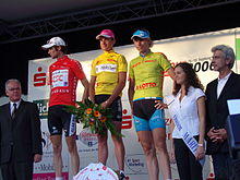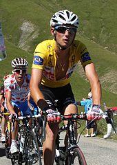 The 2006 season started with a fifth-place finish in Paris–Nice. After a crash in the Tour of the Basque Country, he suffered a concussion.[5] He made his comeback in the Amstel Gold Race that month. Sitting with the favorites with ten kilometers to go, Schleck broke away alone up the Cauberg in Valkenburg for a solo finish while team mate Karsten Kroon disrupted the chase. Three days later he finished 4th in La Flèche Wallonne after a vigorous ride up the Mur de Huy where Spanish rider Alejandro Valverde proved unbeatable. Schleck's form continued days later with the Liège–Bastogne–Liège race, where he rode at the front for much of the latter half and finished 7th. In the Tour de France, he won stage 15 from Gap to Alpe d'Huez, where he broke away from Damiano Cunego 1.5 km from the finish.