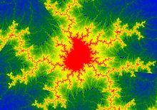 It was assumed that fractal art could not have developed without computers because of the calculative capabilities they provide.[5] Fractals are generated by applying iterative methods to solving non-linear equations or polynomial equations. Fractals are any of various extremely irregular curves or shapes for which any suitably chosen part is similar in shape to a given larger or smaller part when magnified or reduced to the same size.[6]