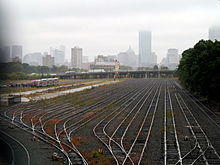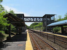 In early 2014, MassDOT proposed DMU local service for the inner part of the line as part of the "Indigo Line".[31] In September 2014, MassDOT announced plans to build the multimodal West Station in Beacon Park Yard as a transfer point between local DMU service and mainline locomotive-hauled commuter rail service. The $25 million station would have been constructed simultaneously with a $260 million reconfiguration of the Mass Pike through Beacon Park Yard and was planned to open in 2020.[32] Plans for DMU service were cancelled in 2015, and West Station was delayed to 2040.[33]